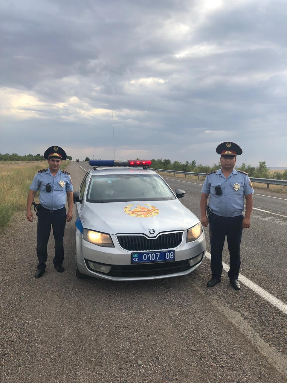 Помощь подоспела вовремя в лице сотрудников батальона патрульной полиции МПС ДП Жамбылской области старшего лейтенанта полиции Т.Сейимбетова и лейтенанта полиции Б.Наурузбаева, которые на служебной машине повезли роженицу и ее мужа в больницу. Но доехать до родильного дома так и не удалось — начались роды.