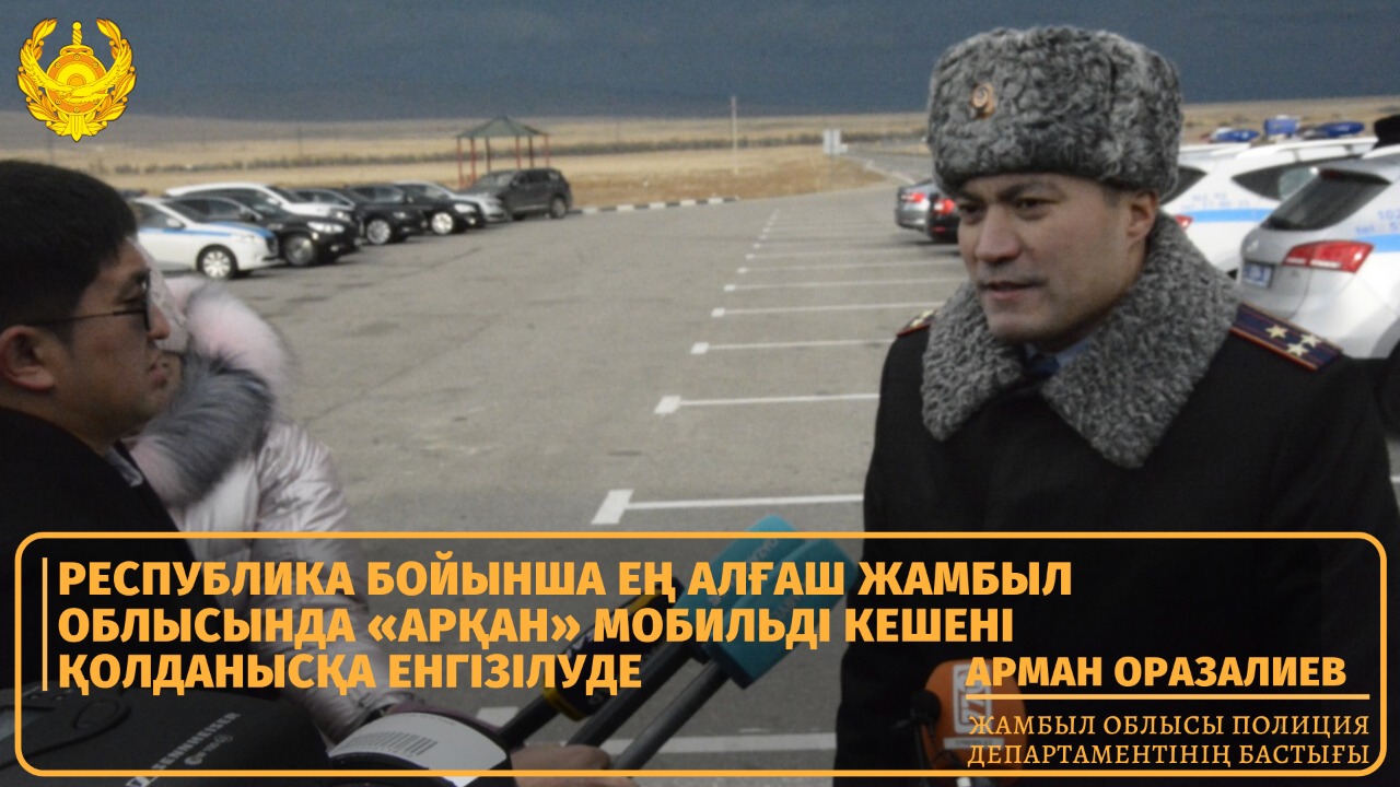 — Өңірімізде жол-көлік оқиғаларының алдын алуда Полиция департаментімен бірқатар іс-шаралар атқарылуда. Осы мақсатта Жамбыл облысы әкімінің қолдауымен Республикалық маңызы бар автожолдарда қызмет көрсететін патрульдік полиция көліктеріне он бірлік «Арқан» мобильді кешенін орнатып, қолданысқа беріп отырмыз. Мобильді кешен облыстың жол-көлік оқиғасы көп орын алатын аумақтарында қызмет көрсететін болады. Сондай-ақ, автоматтандырылған режимде полиция қызметкерлерінің қатысуынсыз бақылау жүргізеді. Айта кетерлік жайт, аталған құрылғы республика бойынша біздің облыста алғаш рет қолданысқа енгізілуде. Кешенді қолданысқа енгізу арқылы біз жолдағы апаттылық деңгейін төмендетуге қол жеткіземіз деген ойдамыз — дей келе, құрылғының мүмкіндіктерін жан-жақты таныстырып өтті.