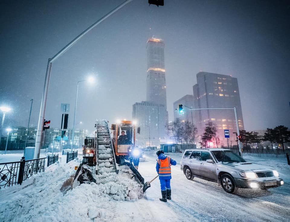 20-тонный КамАЗ заполняется плотным снегом за 1 минуту 46 секунд. Это территория 4 метров. На уборку столицы от снега ежедневно выезжают свыше 1 тыс. единиц техники и почти 2 тысяч рабочих. В среднем за день КамАЗы совершают до 2,5 тыс.рейсов. Аким столицы Алтай Кульгинов вместе с коллегами совершил ночной объезд и проконтролировал ход уборки.