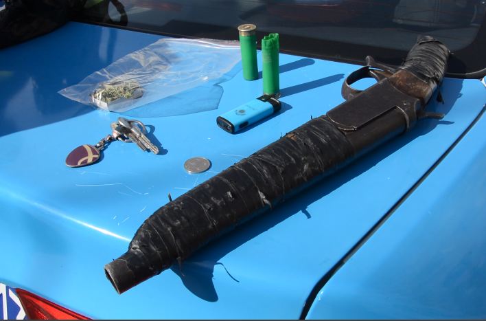 5 ноября 2018 года на одной из городских улиц полицейские остановили автомашину «Фольцваген» за нарушение ПДД, однако водитель, не подчинившись законным требованиям, попытался скрыться. В ходе погони нарушитель проехал на красный свет светофора, после чего бросив машину, попытался убежать, но был задержан. Им оказался житель г. Туркестан, у которого при обыске оперативники обнаружили в автомашине и изъяли обрез охотничьего ружья, патроны и спичечный коробок с наркотическим средством растительного происхождения, похожего на марихуану. Данный факт зарегистрировали в ЕРДР по двум статьям УК РК: 287 «Незаконные приобретение, передача, сбыт, хранение, перевозка или ношение оружия, боеприпасов, взрывчатых веществ и взрывных устройств» и 296 «Незаконное обращение с наркотическими средствами, психотропными веществами, их аналогами, прекурсорами без цели сбыта». Задержанный полностью признался в соденном. Подозреваемый арестован. Проводится досудебное расследование. Назначены экспертизы. Также полицейским предстоит выяснить, с какой целью он носил с собой оружие.