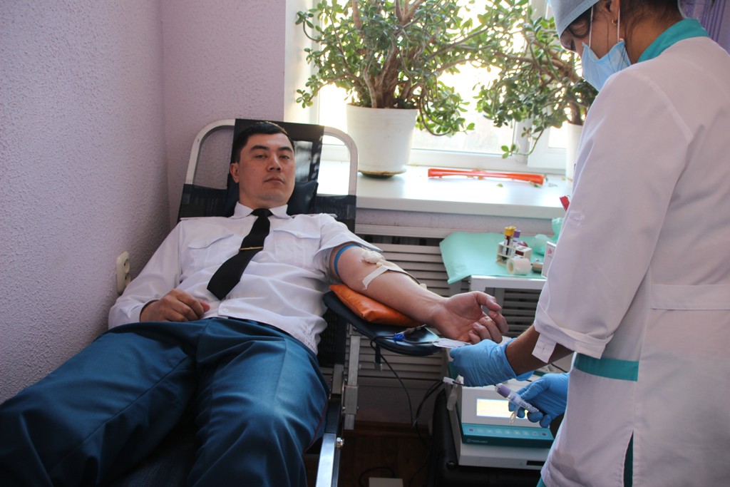 Содан соң донорлыққа жолдама алған құтқарушылардан қан алынды, барлық процедуралар біткен соң қан тапсырған құтқарушыларға мамандар тәтті шәй берді.