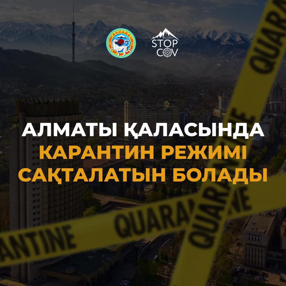 Алматы қаласы әкімдігі жанындағы төтенше жағдай режимін қамтамасыз ету жөніндегі Жедел штаб мегаполис аумағында карантин режимінің сақталатынын хабарлайды. Бұл ретте карантин режимі аясындағы шектеу шаралары, атап айтқанда, ағымдағы жылдың 11 мамырынан бастап Штабтың ерекше өкіміне дейін жалғасады. Бұл туралы Алматы қаласы ікімдігі хабарлады.