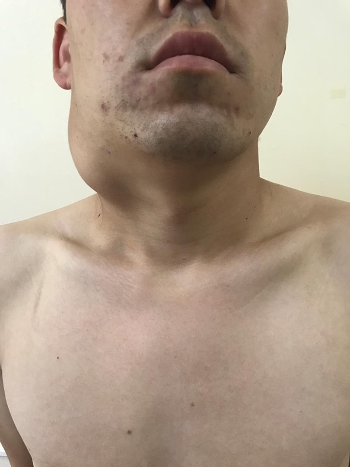 Осылайша науқас Шымкенттегі №1 клиникалық ауруханасының бет-жақ хирургиясы бөлімшесіне түсті. Дәрігерлер мұнда мойындағы безді компьютерлік томографияға түсіргенде, көлемі өте үлкен екендігін анықтайды.