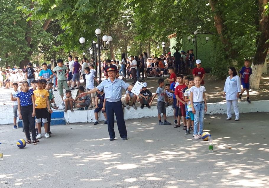 23-маусым Қазақстан полициясы күні Түркістан облысында кең көлемде мерекеленуде. Тәртіп сақшыларына ардагер-қарттарымыздан бастап, кішкентай бүлдіршіндеріміз бен жасөспірімдер де ізгі тілегін арнауда. 2019 жылдың 21-маусым күні «Қазақстан полициясына 27 жыл» толуына орай Сарыағаш аудандық Полиция бөлімінің қызметкерлері және «Балдәурен» балаларды сауықтыру орталығының қызметкерлері бірлесіп осындағы демалушы балаларды қатыстыра отырып, мерекелік және спорттық іс-шаралар өткізді. Ұйымдастырушылар қатарында Сарыағаш АПБ бастығының кадр саясаты жөніндегі орынбасары полиция полковнигі Шамшат Ерлан, кадр саясаты тобының инспекторы полиция-майоры Алимкулов Мұрат, әйелдерге жасалатын зорлық-зомбылыққа қарсы күрес тобының аға инспекторы полиция-майоры Ақтолқын Серікқызы бар. Бақытты балалық шақ тақырыбында «Біз зорлық-зомбылыққа қарсымыз» ұранымен өткен мерекелік шара балаларға көтеріңкі көңіл-күй сыйлады. Футбол, волейбол, баскетбол сынды спорт түрлерінен сынға түскен балалар, одан кейін концерттік бағдарлама қойды. Сауықтыру орталығындағы оқушылар, еліміздің тыныштығын қорғап, қоғамдық қауіпсіздіктің сақталуы жолында күн-түн демей жұмыс істейтін полицейлерді кәсіби мерекелерімен құттықтап, кішкентай жүректерінен шыққан ізгі ниеттерін білдірді. Осындай мерекелік шара Кентау АПБ-нің жеке құрам қызметкерлерінің ұйымдастыруымен «Алпамыс» жазғы демалыс лагерінде жалғасып, спорттық іс-шара ретінде өткізілді. Жарыстың ашылуында Кентау қалалық полиция бөлімі басшысының орынбасары полиция подполковнигі Тұрғанбаев Мұхаммедәли қатысушыларға сәттілік тіледі. Болашақ, Ғаламат, Достық болып, 3 топқа бөлінген демалушы балалар шағын футбол мен эстафеталық жарыстар бойынша жарысып, бақ сынасты. Спортқа бейім оқушылар барлық спорт түрлері бойынша шапшаңдықтарын көрсетіп, ойынды тартысты да қызықты өткізді. Ойын соңында жеңімпаздарға полицейлер тарапынан сый-сыяпаттар мен грамоталар табысталды. Салауатты өмір салтын ұстануға бағыттайтын спорттық сайыстардан соң, өнерге жақын талантты балалар ән шырқап, би билеп мерекелік концерт ұйымдастырды. Болашақ ұрпағымыздың тәртіп сақшыларына деген сенімін, таза көңілін көріп, ел қорғандарының бүгінгі жасап жүрген жұмыстарының абыройы биік, нәтижелі екенін көруге болады. Сондықтан, Құрметті Қазақстан Полицейлері мерекелеріңіз құтты болсын! Қоғамымызда қылмысты болдырмауда атқарып жатқан еңбектеріңіз жемісті болғай!